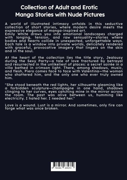 A world of illustrated intimacy unfolds in this seductive collection of short stories, where modern desire meets the expressive elegance of manga-inspired art.Emily White draws you into emotional landscapes charged with longing, tension, and raw sensuality-stories where bodies and hearts collide in unexpected, unforgettable ways. Each tale is a window into private worlds, delicately rendered with graceful, provocative imagery that lingers on the skin and in the soul.At the heart of the collection lies the title story, Jealousy during the Sexy Party-a tale of love fractured by betrayal and resurrected in the unlikeliest of places: a secret soirée in a villa bathed in crimson light. There, among shadows, music, and flesh, Piero comes face to face with Valentina-the woman who shattered him, and the only one who ever truly owned him."She stood beneath the red lights, her silhouette gleaming like a forbidden sculpture-champagne in one hand, shadows clinging to her curves, eyes catching mine in the mirror across the room. The past was alive between us, humming like electricity. I hated her. I needed her."Love is a wound. Lust is a mirror. And sometimes, only fire can forge what was once broken.