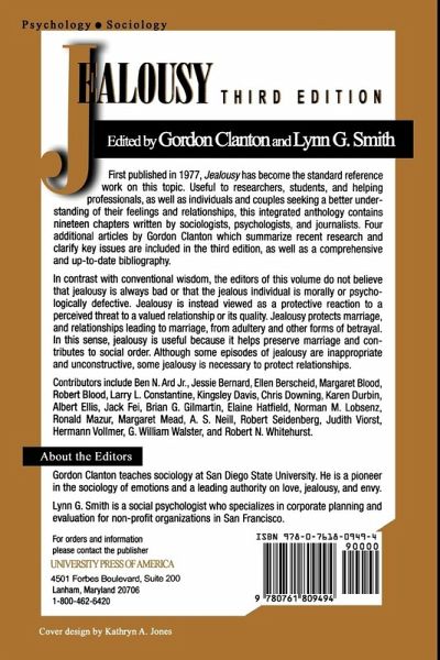This book, first published in 1977 by Prentice Hall, is an integrated anthology of writings on jealousy that will be useful to researchers, students, helping professionals, and to individuals and couples seeking a better understanding of their feelings and relationships.