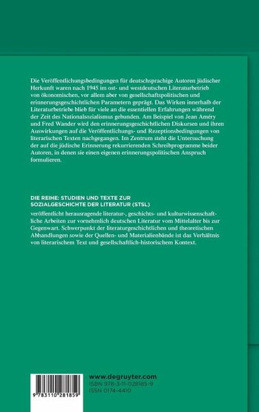 Die Veröffentlichungsbedingungen für deutschsprachige Autoren jüdischer Herkunft waren nach 1945 im ost- und westdeutschen Literaturbetrieb von ökonomischen, vor allem aber von gesellschaftspolitischen und erinnerungsgeschichtlichen Parametern geprägt. Das Wirken innerhalb der Literaturbetriebe als Autoren blieb für viele an die essentiellen Erfahrungen während der Zeit des Nationalsozialismus gebunden. Am Beispiel der beiden Schriftsteller Jean Améry und Fred Wander wird den erinnerungsgeschichtlichen Diskursen und ihren Auswirkungen auf die Veröffentlichungs- und Rezeptionsbedingungen von literarischen Texten nachgegangen. Beide Autoren verpflichteten sich durch ihre poetologischen Verfahren einer eigenen, auf der jüdischen Erinnerung beruhenden Gedächtnisarbeit, die zugleich eine Differenz der Erinnerung gegenüber führenden Vertretern von Erinnerungsgemeinschaften beider deutscher Staaten enthielt. Ihre Entwicklung eines eigenen Erinnerungs- und Literaturbegriffes, ihre Partizipation an öffentlichen Debatten und ihre Standortbestimmung als deutschsprachige Autoren jüdischer Herkunft verdeutlicht die Bedeutung, die ihnen sowie anderen Autoren jüdischer Herkunft bei der Herausbildung einer differenzierten und kritischen deutsch-deutschen Nachkriegsliteratur zukam.