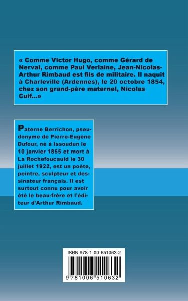 Paterne Berrichon, de son vrai nom Pierre-Eugène Dufour, est un écrivain, poète et biographe français, né en 1855. Il est surtout connu pour ses travaux consacrés à Jean-Arthur Rimbaud, dont il a épousé la soeur, Isabelle Rimbaud. Grâce à cette relation familiale, Berrichon a eu accès à des documents et des témoignages uniques, lui permettant de rédiger une biographie détaillée et authentique du célèbre poète. Berrichon a commencé sa carrière en tant que poète, publiant plusieurs recueils de vers avant de se consacrer pleinement à l'étude et à la promotion de l'oeuvre de Rimbaud. Son mariage avec Isabelle Rimbaud en 1897 a renforcé son engagement à préserver et à diffuser l'héritage littéraire de son beau-frère. Outre "Jean-Arthur Rimbaud", Berrichon a écrit plusieurs articles et essais sur la vie et l'oeuvre de Rimbaud, participant activement à la redécouverte et à la réévaluation de ce poète majeur du XIXe siècle. Il a également édité des collections de lettres et de manuscrits de Rimbaud, contribuant ainsi à enrichir notre compréhension de la vie et de la pensée de ce génie littéraire. Berrichon est reconnu pour son style clair et érudit, capable de rendre accessibles les aspects complexes de la vie et de l'oeuvre de Rimbaud. Son travail a été salué pour son authenticité et sa profondeur, offrant un regard intime sur un poète dont la vie a souvent été entourée de mystères et de légendes. Paterne Berrichon est décédé en 1922, laissant derrière lui une contribution inestimable à la biographie et à la critique littéraire de Jean-Arthur Rimbaud. Son dévouement à la mémoire de Rimbaud continue d'inspirer les chercheurs et les amateurs de poésie à travers le monde.