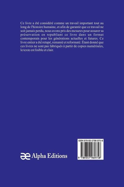 Jean Racine, un livre classique, a été considéré comme important tout au long de l'histoire de l'humanité, et pour que cet ouvrage ne soit jamais oublié, chez Alpha Editions, nous avons fait des efforts pour sa préservation en rééditant ce livre dans un format moderne pour les générations présentes et futures. Tout ce livre a été reformaté, retapé et conçu. Ces livres ne sont pas constitués de copies numérisées de leur ¿uvre originale et le texte est donc clair et lisible.