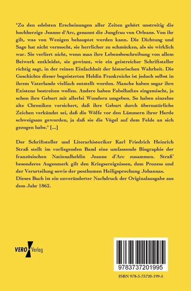 Der Schriftsteller und Literarhistoriker Karl Friedrich Heinrich Straß stellt im vorliegenden Band eine umfassende Biographie der französischen Nationalheldin Jeanne d Arc zusammen. Straß besonderes Augenmerk gilt den Kriegsereignissen, dem Prozess und der Verurteilung sowie der posthumen Heiligsprechung Johannas.