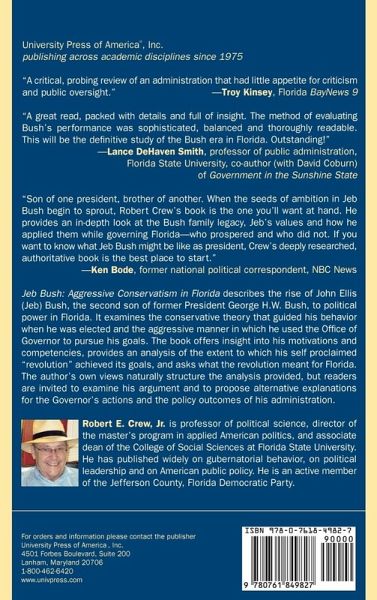 This book examines the conservative theory that guided Jeb Bush's behavior and the aggressive manner in which he used the Office of Governor to pursue his goals. It offers insight into his motivations and competencies and analyzes the extent to which his self proclaimed 'revolution' achieved its goals in Florida.