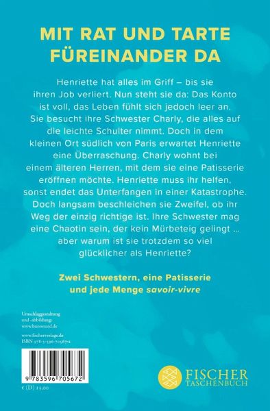 Henriette hat alles im Griff - bis sie ihren Job verliert. Nun steht sie da: Das Konto ist voll, das Leben fühlt sich jedoch leer an. Sie besucht ihre Schwester Charly, die alles auf die leichte Schulter nimmt. Doch in dem kleinen Ort südlich von Paris erwartet Henriette eine Überraschung. Charly wohnt bei einem älteren Herren, mit dem sie eine Patisserie eröffnen möchte. Henriette muss ihr helfen, sonst endet das Unterfangen in einer Katastrophe. Doch langsam beschleichen sie Zweifel, ob ihr Weg der einzig richtige ist. Ihre Schwester mag eine Chaotin sein, der kein Mürbeteig gelingt ... aber warum ist sie trotzdem so viel glücklicher als Henriette?