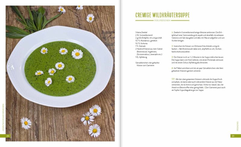 ...ein Muss für alle, denen gesunder Genuss und eine nachhaltige, tierleidfreie Lebensweise wichtig sind. Kochen ohne Knochen, Gudrun Gülden ein toller Spagat aus einfallsreichen Rezepten ..., die einfach zubereitet sind und die meisten Speisekammern nicht überfordern werden. Ein tolles Werk am Puls der Zeit. vegan-news.de, Michael Krist (http://www.vegan-news.de/jeden-tag-vegan-geniessen-kochbuch) Mit diesen köstlichen Rezepten lässt es sich ganz einfach vegan durchstarten und für diejenigen, die sich bereits vegan ernähren, hält es viele Inspirationen für die vegane Alltagsküche bereit. VeganBlatt, Lisa Dobler Ein schönes, praktisches und sehr sympathisches Buch, das Lust auf einfache, gesunde und saisonale Küche macht und dabei auf dem Boden bleibt. Nicht nur sehr schön gestaltet, sondern auch durchdacht und mit Persönlichkeit geschrieben. Leckere Rezepte für die gesunde, leichte Alltagsküche. diegruenekosmonautin.wordpress.com, Franziska Thiele