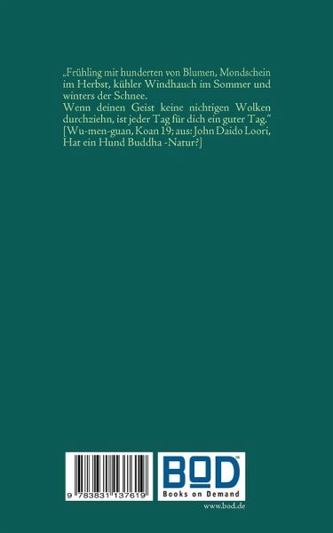"Frühling mit hunderten von Blumen, Mondschein im Herbst, kühler Windhauch im Sommer und winters der Schnee.Wenn deinen Geist keine nichtigen Wolken durchziehn, ist jeder Tag für dich ein guter Tag."[Wu-men-guan, Koan 19; aus: John Daido Loori, Hat ein Hund Buddha -Natur?]