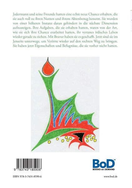 Jedermann und seine Freunde hatten eine echte neue Chance erhalten, die sie auch voll zu ihren Nutzen und ihrem Aktenbezug benutzt. Sie wurden von einer höheren Instanz daran gehindert in die nächste Dimension aufzusteigen. Ihre Aufgaben, die sie erhalten hatten, waren von der Art, wie sie sich ihre Chance erarbeitet hatten, ihr vertanes irdisches Leben wieder gerade zu ziehen. Mit Bravur haben sie es geschafft. Jetzt sind sie im Jenseits unterwegs, um Verirrte wieder auf den rechten Weg zu bringen. Sie haben jetzt Eigenschaften und Befugnisse, die sie vorher nicht hatten.