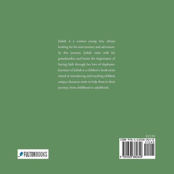 Jediah is a curious young boy, always looking for his next journey and adventure. In this journey, Jediah visits with his grandmother and learns the importance of having faith through her love of elephants. Journeys of Jediah is a children's book series aimed at introducing and teaching children unique character traits to help them in their journey, from childhood to adulthood.