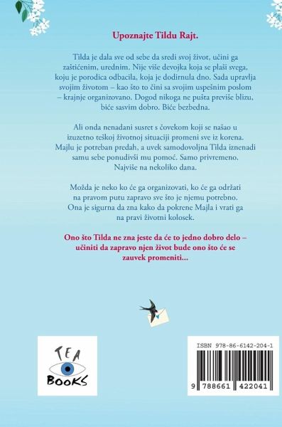 Upoznajte Tildu Rajt. Tilda je dala sve od sebe da sredi svoj ivot, üini ga zati¿enim, urednim. Nije vie devojka koja se plai svega, koju je porodica odbacila, koja je dodirnula dno. Sada upravlja svojim ivotom - kao to to ¿ini sa svojim uspenim poslom - krajnje organizovano. Dogod nikoga ne puta previe blizu, bi¿e sasvim dobro. Bi¿e bezbedna. Ali onda nenadani susret s ¿ovekom koji se naao u izuzetno tekoj ivotnoj situaciji promeni sve iz korena. Majlu je potreban predah, a uvek samodovoljna Tilda iznenadi samu sebe ponudivi mu pomö. Samo privremeno. Najvie na nekoliko dana. Moda je neko ko ¿e ga organizovati, ko ¿e ga odrati na pravom putu zapravo sve to je njemu potrebno. Ona je sigurna da zna kako da pokrene Majla i vrati ga na pravi ivotni kolosek. Ono to Tilda ne zna jeste da ¿e to jedno dobro delo - üiniti da zapravo njen ivot bude ono to ¿e se zauvek promeniti...