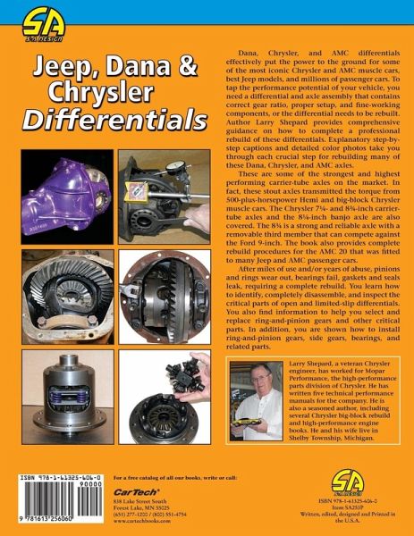 The photos in this edition are black and white. Over the last 40 years, millions of Chrysler, AMC, and Jeep vehicles have used these differentials, propelling these high-performance vehicles to victory on the street, in drag racing, and other applications. Chrysler used the Dana 60 and BorgWarner Sure-Grip high-performance differentials in the Challenger, Charger, Barracuda, Super Bee and many other renowned Chrysler muscle cars. These differentials have been tied to historic powerhouse engines, such as the Chrysler Magnum and Hemi V8s in stock car, drag racing, and other forms of racing, making history in the process. Jeep CJs and Cherokees have used the Dana 44 and AMC 20 and put these differentials under tremendous loads, which often requires frequent rebuilds. After years of use, these differentials require rebuilding, and of course aftermarket suppliers offer ring and pinion and other parts to upgrade these axles. In this Workbench series title, the focus is on the disassembly, inspection and step-by-step rebuild of the most popular high-performance differentials. Axles and differentials are not incredibly complex components, but there are some specific steps to follow for rebuilding, upgrading, and setting them up properly, and this book demystifies the process and explains it in detail. A book dedicated to the Dana, Sure-Grip, and AMC Jeep axles has never been published before, and Mopar, Jeep and AMC enthusiasts are hungry for this information. The Dana and AMC axles should remain in wide use into the foreseeable future, and therefore there will be a consistent demand for this information. This book will also feature extensive gear and application charts, so the reader is sure to select the correct gear ratio for a particular vehicle and application. Special coverage is therefore dedicated to ring and pinion gears. In addition selecting the best aftermarket and production axle shafts is covered as well as modifying and upgrading the differential housings.