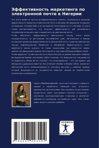 Jeta kniga qwlqetsq chast'ü issledowatel'skogo proekta, poswqschennogo izucheniü äffektiwnosti marketinga älektronnoj pochty w Nigerii. Issledowanie poswqscheno nigerijskim potrebitelqm i ih wospriqtiü email-marketinga w Nigerii. V knige takzhe rassmatriwaetsq, chto oznachaet äffektiwnost' dlq nigerijskogo potrebitelq, kogda rech' idet o marketinge po älektronnoj pochte.Chtoby obespechit' äffektiwnost' älektronnogo pis'ma, ochen' wazhno sosredotochit'sq na dostizhenii postawlennoj celi. Organizacii i brendy ispol'zuüt razlichnye formy marketinga älektronnoj pochty, takie kak älektronnye pis'ma, informacionnye bülleteni i ob#qwleniq. Jeffektiwnost' email-marketinga mozhno ocenit' po takim pokazatelqm, kak kolichestwo klikow, kolichestwo obraschenij i kolichestwo otkazow ot rassylki (Zirthang and Rudra, 2014).Chtoby marketing po älektronnoj pochte byl uspeshnym, on dolzhen okazywat' wliqnie. Issledowanie Khedkar and Khedkar (2021) pokazalo, chto bol'shinstwo specialistow po marketingu (bolee 80 %) schitaüt, chto email-marketing - äto instrument dlq ubezhdeniq i uderzhaniq klientow. Kak otmechaüt Khedkar i Khedkar (2021), marketing älektronnoj pochty äwolücionirowal ot massowyh rassylok k celewomu podhodu, kotoryj fokusiruetsq na potrebnostqh klientow, uwazhaq ih predpochteniq, osnowannye na razreshenii.