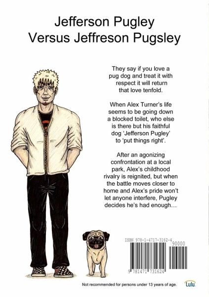 Jefferson Pugley Versus Jeffreson Pugsley They say if you love a pug dog and treat it with respect it will return that love tenfold. When Alex Turner's life seems to be going down a blocked toilet, who else is there but his faithful dog 'Jefferson Pugley' to 'put things right'. After an agonizing confrontation at a local park, Alex's childhood rivalry is reignited, but when the battle moves closer to home and Alex's pride won't let anyone interfere, Pugley decides he's had enough... The third book of the first Jefferson Pugley trilogy. The first four books can be read in any order whereas books five and six are recommended to be read sequentially: The complete list of Jefferson Pugley titles: Jefferson Pugley's Pyroclastic Hoobajoob Jefferson Pugley: Brollercoaster Extraordinaire Jefferson Pugley Versus Jeffreson Pugsley Jefferson Pugley Takes To The Skies Jefferson Pugley V: Bad Medicine The Trial and Sentence Of Jefferson Pugley