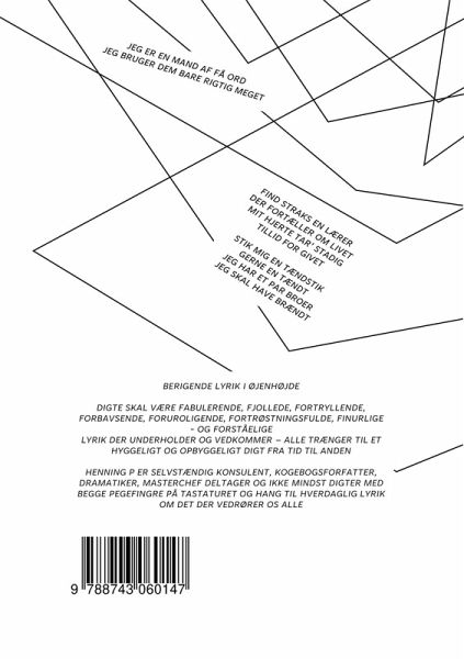 Henning P er selvstændig konsulent, kogebogsforfatter, dramatiker, Masterchef deltager og ikke mindst digter med begge pegefingre på tastaturet og hang til hverdaglig lyrik om det der vedrører os alle.