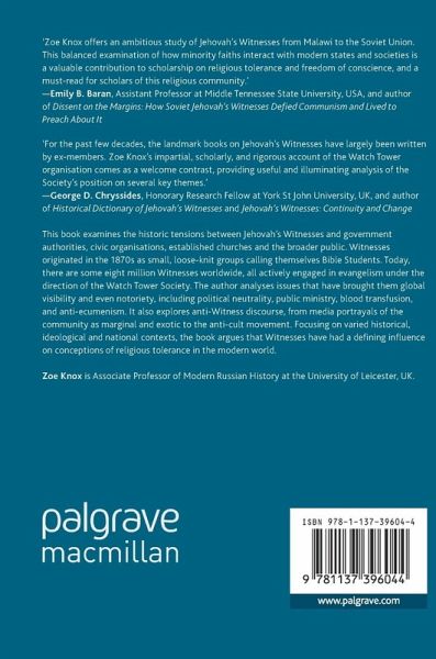 This book examines the historic tensions between Jehovah's Witnesses and government authorities, civic organisations, established churches and the broader public. Witnesses originated in the 1870s as small, loose-knit groups calling themselves Bible Students. Today, there are some eight million Witnesses worldwide, all actively engaged in evangelism under the direction of the Watch Tower Society. The author analyses issues that have brought them global visibility and even notoriety, including political neutrality, public ministry, blood transfusion, and anti-ecumenism. It also explores anti-Witness discourse, from media portrayals of the community as marginal and exotic to the anti-cult movement. Focusing on varied historical, ideological and national contexts, the book argues that Witnesses have had a defining influence on conceptions of religious tolerance in the modern world.