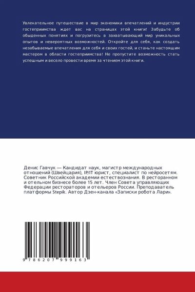 Uwlekatel'noe puteshestwie w mir äkonomiki wpechatlenij i industrii gostepriimstwa zhdet was na stranicah ätoj knigi! Zabud'te ob obydennyh ponqtiqh i pogruzites' w zahwatywaüschij mir unikal'nyh opytow i neweroqtnyh wozmozhnostej. Otkrojte dlq sebq, kak sozdat' nezabywaemye wpechatleniq dlq sebq i swoih gostej, i stan'te nastoqschim masterom w oblasti gostepriimstwa! Ne propustite wozmozhnost' stat' uspeshnym i weselo prowesti wremq za chteniem ätoj knigi.