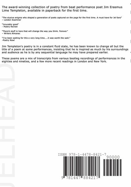 Jim Templeton's poetry is in a constant fluid state, he has been known to change all but the title of a poem at some performances, insisting that he is inspired as much by his surroundings and audience as he is by any sequential language he may have prepared earlier. So these poems are a mix of transcripts from various bootleg recordings of performances in the eighties and nineties, and a few more recent readings in London and New York. Jim famously refuses to write down his verse. In 1999, a napkin used by him to write down the first few verses of "Nahuatl Toroid" sold on Ebay.Com for over £200. Rumour has it that the napkin was bought by the late Marlon Brando who promptly burned the napkin "to preserve the myth".