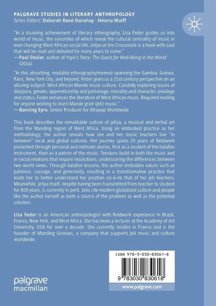 This book describes the remarkable culture of jeliya, a musical and verbal art from the Manding region of West Africa. Using an embodied practice as her methodology, the author reveals how she and her music teachers live "in between" local and global cultures. Her journey spans 20 years of fieldwork presented through personal and intimate stories, first as a student of the balafon instrument, then as a patron of the music. Tensions build in both the music and in social relations that require resolutions, underscoring the differences between two world views. Through balafon lessons, the author embodies values such as patience, courage, and generosity, resulting in a transformative practice that leads her to better understand her position vis-à-vis that of her jeli teachers. Meanwhile, jeliya itself, despite having been transmitted from teacher to student for 800 years, is currently in peril. Jelis cite modern globalized culture and people like the author herself as both a source of the problem as well as the potential solution.