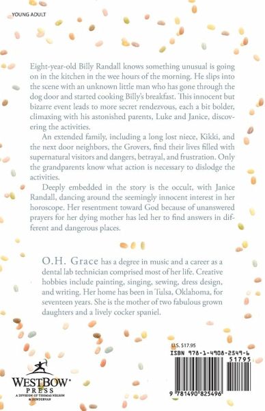 Eight-year-old Billy Randall knows something unusual is going on in the kitchen in the wee hours of the morning. He slips into the scene with an unknown little man who has gone through the dog door and started cooking Billy’s breakfast. This innocent but bizarre event leads to more secret rendezvous, each a bit bolder, climaxing with his astonished parents, Luke and Janice, discovering the activities. An extended family, including a long lost niece, Kikki, and the next door neighbors, the Grovers, find their lives filled with supernatural visitors and dangers, betrayal, and frustration. Only the grandparents know what action is necessary to dislodge the activities. Deeply embedded in the story is the occult, with Janice Randall, dancing around the seemingly innocent interest in her horoscope. Her resentment toward God because of unanswered prayers for her dying mother has led her to find answers in different and dangerous places.