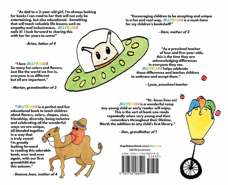 Thirty-five JELLYBEANS have come together to share a sweet and thoughtful poem promoting kindness and inclusion with children, 0 to 8+ years. Join in their adventure as they discover their unique qualities while realizing they are all, ultimately, the same. The JELLYBEANS book is sure to be a favorite among children and their family members.