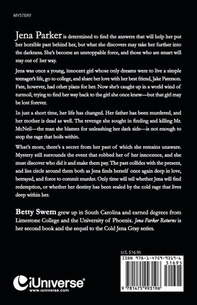 Jena Parker is determined to find the answers that will help her put her horrible past behind her, but what she discovers may take her further into the darkness. She's become an unstoppable force, and those who are smart will stay out of her way. Jena was once a young, innocent girl whose only dreams were to live a simple teenager's life, go to college, and share her love with her best friend, Jake Paterson. Fate, however, had other plans for her. Now she's caught up in a world wind of turmoil, trying to find her way back to the girl she once knew-but that girl may be lost forever. In just a short time, her life has changed. Her father has been murdered, and her mother is dead as well. The revenge she sought in finding and killing Mr. McNeil-the man she blames for unleashing her dark side-is not enough to stop the rage that boils within. What's more, there's a secret from her past of which she remains unaware. Mystery still surrounds the event that robbed her of her innocence, and she must discover who did it and make them pay. The past collides with the present, and lies circle around them both as Jena finds herself once again deep in love, betrayed, and force to commit murder. Only time will tell whether Jena will find redemption, or whether her destiny has been sealed by the cold rage that lives deep within her.