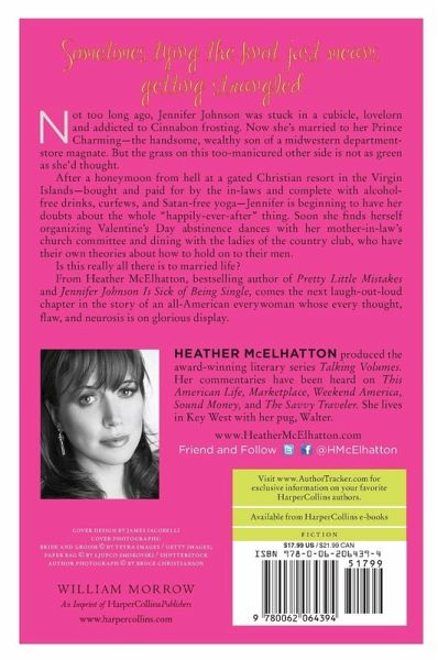 No so terribly long ago, Heather McElhatton’s flawed, neurotic, yet lovable average American heroine Jennifer Johnson was sick of being single. Now Jennifer Johnson is Sick of Being Married. The author who brought us the wildly popular Pretty Little Mistakes now favors readers with the next delectably eventful chapter in Jennifer’s life, as her new fairy tale marriage (to the wealthy son of a department store tycoon) hits a serious snag, thanks in no small part to a honeymoon-from-hell in a fundamentalist Christian compound and the prospect of a life of bizarre servitude to her devout mother-in-law’s church committee. This is outrageously funny, wonderfully edgy contemporary women’s fiction in the Helen Fielding and Sophie Kinsella mode that anyone who has ever laughed at the raunchy humor of Sarah Silverman or Chelsea Handler is going to love.