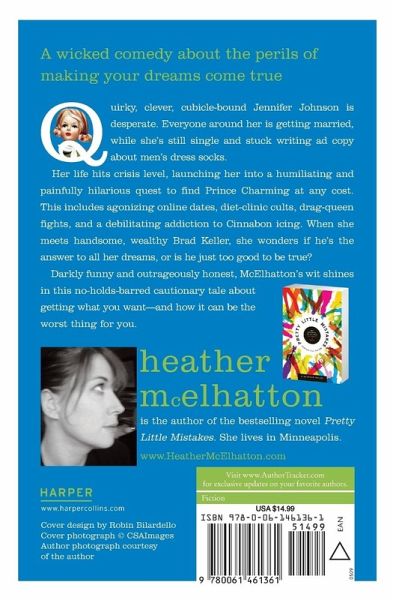 A wicked comedy about the perils of making your dreams come true Quirky, clever, cubicle-bound Jennifer Johnson is desperate. Everyone around her is getting married, while she's still single and stuck writing ad copy about men's dress socks. Her life hits crisis level, launching her into a humiliating and painfully hilarious quest to find Prince Charming at any cost. This includes agonizing online dates, diet-clinic cults, drag-queen fights, and a debilitating addiction to Cinnabon icing. When she meets handsome, wealthy Brad Keller, she wonders if he's the answer to all her dreams, or is he just too good to be true? Darkly funny and outrageously honest, McElhatton's wit shines in this no-holds-barred cautionary tale about getting what you want--and how it can be the worst thing for you.