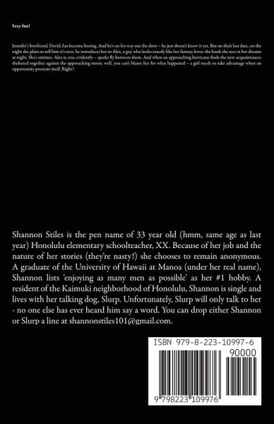 Sexy fun! Jennifer's boyfriend, David, has become boring. And he's on his way out the door – he just doesn't know it yet. But on their last date, on the night she plans to tell him it's over, he introduces her to Alex, a guy who looks exactly like her fantasy lover, the hunk she sees in her dreams at night. She's smitten. Alex is, too, evidently – sparks fly between them. And when an approaching hurricane finds the new acquaintances sheltered together against the approaching storm, well, you can't blame her for what happened – a girl needs to take advantage when an opportunity presents itself. Right?