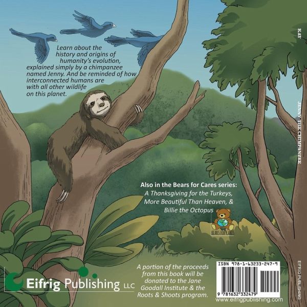 Learn about the history and origins of humanity's evolution, explained simply by a chimpanzee named Jenny. And be reminded of how interconnected humans are with all other wildlife on this planet. About the Author: Lotus Kay Lotus Kay is a teen writer. Her writings have been published in various publications such as Thrive Global, Vegan Health & Fitness Magazine, New Leaves, Light of Consciousness, and Voya: Voice of Youth Advocates. She is a recipient of a grant from Jane Goodall's Roots and Shoots program for her work creating an educational campaign called Bears for Cares to educate youth about endangered species and wildlife. She is the author of More Beautiful Than Heaven, Billie the Octopus, Thanksgiving for the Turkeys, and Jenny the Chimpanzee, all in collaboration with Bears for Cares, to educate kids on the importance and beauty of nature, and motivate them to help protect the Earth.