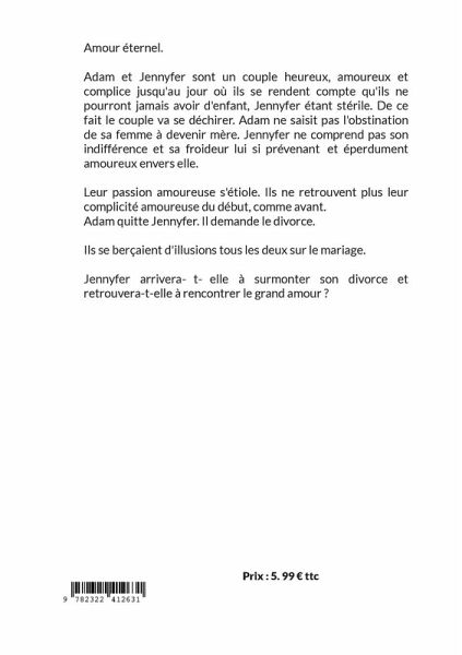 Amour éternel.Adam et Jennyfer sont un couple heureux, amoureux et complice jusqu'au jour où ils se rendent compte qu'ils ne pourront jamais avoir d'enfant, Jennyfer étant stérile. De ce fait le couple va se déchirer. Adam ne saisit pas l'obstination de sa femme à devenir mère. Jennyfer ne comprend pas son indifférence et sa froideur lui si prévenant et éperdument amoureux envers elle. Leur passion amoureuse s'étiole. Ils ne retrouvent plus leur complicité amoureuse du début, comme avant.Adam quitte Jennyfer. Il demande le divorce.Ils se berçaient d'illusions tous les deux sur le mariage.Jennyfer arrivera-t-elle à surmonter son divorce et retrouvera-t-elle à rencontrer le grand amour ?