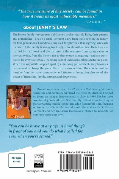 The Brown family - seven-year-old Cooper, twelve-year-old Ruby, their parents, Hazel and Wally, and their widowed grandfather Henry - live on a small Vermont dairy farm that's been in the family for four generations. Their lives are marked by hard work and the rhythms of the seasons, from spring calves to the county fair to deer season to sugaring, as well as events that are part of the school year, including school lock downs called Shelter in Place. When their way of life is shattered by a shocking gun accident, Ruby is determined to change the gun culture that surrounds her. Her efforts result in hostility from her rural community and friction at home, but also reveal the power of friendship, family, courage, and forgiveness.