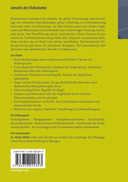 Herausforderungen einer sozialwissenschaftlichen Theorie des Widerspruchs.- Formallogischer Widerspruch, dialektischer Widerspruch, Antinomie. Reflexionen über den Widerspruch.- Antinomie, Widerspruch und Begriff. Aspekte der Hegelschen Spekulation.- Hegel und der Klimawandel. Zur gesellschaftlichen Relevanz einer dialektischen Naturphilosophie heute.- Über den Begriff des 'Begriffs' bei Hegel.- Adorno und Dahrendorf oder die vergebliche Suche nach den Elementarteilchen der Gesellschaft.- Der Doppelcharakter von Kritik. Zur Konstellation immanenter und transzendenter Kritik.- Halbierte oder negative Dialektik. Vermittlung als Schlüsselkategorie.