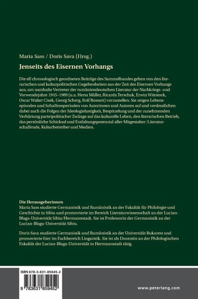 Erzwungene Einfügung in gewandelte Verhältnisse (Stefan Sienerth) - Oscar Walter Ciseks Beitrag zur rumäniendeutschen Literatur nach 1945 (Roxana Nubert / Ana-Maria Dascalu-Romitan) - Projekt und Produkt. Ältere Autoren in neuer Zeit. Anmerkungen zur siebenbürgisch-deutschen Literatur in den Jahren 1945-1989 (Joachim Wittstock) - «...gegen den Strom schwimmend [durchbrach er] den Eisernen Vorhang ostwärts...». Einige Betrachtungen zu Georg Schergs Leben und Werk (Maria Sass) - Deutschland zwischen Eutopie und Dystopie im Gedichtband Gottes Mühlen in Berlin von Immanuel Weißglas (Markus Fischer) - Fluchtmöglichkeiten in Zeiten der Diktatur. Marin Sorescu zwischen Isolation und Kosmopolitismus (Roxana-Andreea Ghita / Catalin Ghita) - «Das Wort ist ein schiefer Flug. / Das Wort ist ein steifer Vogel». Das redende Schweigen in Rolf Bosserts Lyrik (Cosmin Dragoste) - «Negative Mythologien» in Herta Müllers Erzählungen jenseits des Eisernen Vorhangs (Grazziella Predoiu) - Ricarda Terschak als Kinderbuchautorin (Sunhild Galter) - Die Ceausescu-Zensur zwischen Zwang, Freiraum und Widerspruch: ein vielstimmiges Phänomen im rumäniendeutschen Gedächtnis (Claudia Spiridon Serbu) - Vorhang auf: Literaturvermittlung und Ideologiekonformität in der Vorwendezeit (1968-1978). Die Hermannstädter Zeitung als Fallbeispiel (Doris Sava)