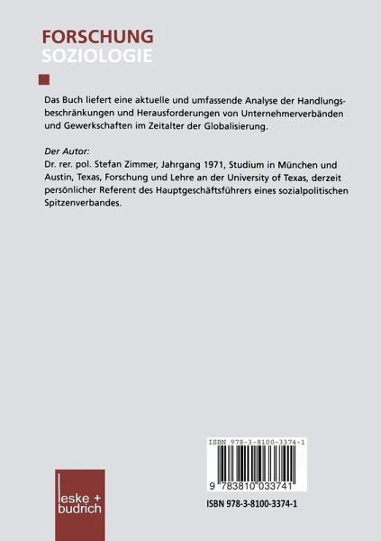 Das Buch liefert eine aktuelle und umfassende Analyse der Handlungsbeschränkungen und Herausforderungen von Unternehmerverbänden und Gewerkschaften im Zeitalter der Globalisierung.