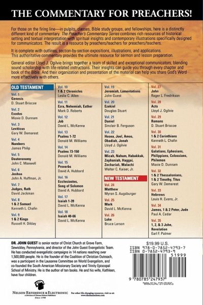 Written BY Preachers and Teachers FOR Preachers and Teachers Combining fresh insights with readable exposition and relatable examples, The Preacher's Commentary will help you minister to others and see their lives transformed through the power of God's Word. Whether preacher, teacher, or Bible study leader--if you're a communicator, The Preacher's Commentary will help you share God's Word more effectively with others. This volume combining commentary on Jeremiah & Lamentations allows the prophet to speak to us and to call us to obey God even as he called the children of Israel centuries ago. Each volume is written by one of today's top scholars, and includes: Innovative ideas for preaching and teaching God's Word Vibrant paragraph-by-paragraph exposition Impelling real-life illustrations Insightful and relevant contemporary application An introduction, which reveals the author's approach A full outline of the biblical book being covered Scripture passages (using the New King James Version) and explanations The Preacher's Commentary offers pastors, teachers, and Bible study leaders clear and compelling insights into the Bible that will equip them to understand, apply, and teach the truth in God's Word.