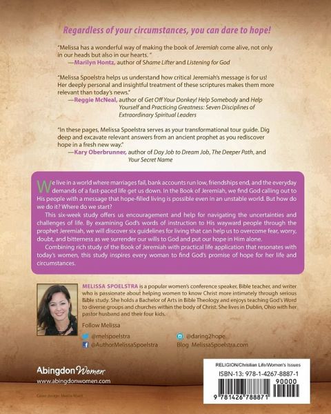 When we look around at today's world, hope usually isn't the first word that comes to mind. In many ways we live in an unstable world where marriages fail, bank accounts run low, friendships end, and the everyday demands of a fast-paced life get us down. In the Book of Jeremiah, we find God calling out to His people with a message of hope--a message that intentional living is possible even in an unstable world. But how do we do this? Where do we start? Jeremiah offers women hope for living in an uncertain world by learning to navigate the challenges and circumstances of their lives. This six-week study examines God's words of instruction to His wayward people through the prophet Jeremiah, and provides women six guidelines for intentional living to overcome fear, worry, and doubt as they surrender their wills to God's and put their hope in Him alone. Combining rich study of the Book of Jeremiah with practical life application that resonates with the realities and experiences of today's women, this study inspires all women to dare to hope, remembering that God is rich in mercy and love and has good plans for us. The participant workbook includes five days of lessons for each week, combining study of Scripture with personal reflection, application, and prayer. Other components for the Bible study, available separately, include a Leader Guide, DVD with six 20-25 minute sessions, and boxed Leader Kit (an all-inclusive box containing one copy of each of the Bible study's components).