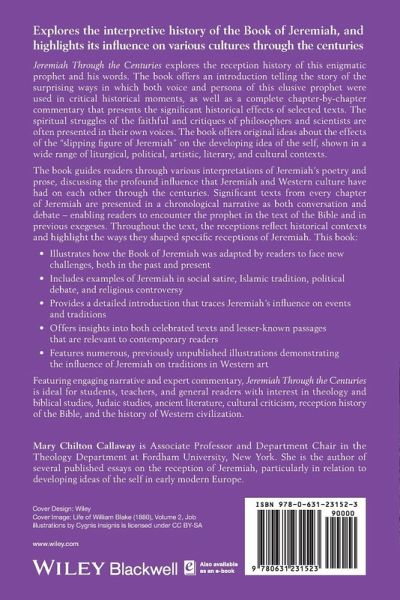 Explores the interpretive history of the Book of Jeremiah, and highlights its influence on various cultures through the centuries Jeremiah Through the Centuries explores the reception history of this enigmatic prophet and his words. The book offers an introduction telling the story of the surprising ways in which both voice and persona of this elusive prophet were used in critical historical moments, as well as a complete chapter-by-chapter commentary that presents the significant historical effects of selected texts. The spiritual struggles of the faithful and critiques of philosophers and scientists are often presented in their own voices. The book offers original ideas about the effects of the "slipping figure of Jeremiah" on the developing idea of the self, shown in a wide range of liturgical, political, artistic, literary, and cultural contexts. The book guides readers through various interpretations of Jeremiah's poetry and prose, discussing the profound influence that Jeremiah and Western culture have had on each other through the centuries. Significant texts from every chapter of Jeremiah are presented in a chronological narrative as both conversation and debate - enabling readers to encounter the prophet in the text of the Bible and in previous exegeses. Throughout the text, the receptions reflect historical contexts and highlight the ways they shaped specific receptions of Jeremiah. This book: * Illustrates how the Book of Jeremiah was adapted by readers to face new challenges, both in the past and present * Includes examples of Jeremiah in social satire, Islamic tradition, political debate, and religious controversy * Provides a detailed introduction that traces Jeremiah's influence on events and traditions * Offers insights into both celebrated texts and lesser-known passages that are relevant to contemporary readers * Features numerous, previously unpublished illustrations demonstrating the influence of Jeremiah on traditions in Western art Featuring engaging narrative and expert commentary, Jeremiah Through the Centuries is ideal for students, teachers, and general readers with interest in theology and biblical studies, Judaic studies, ancient literature, cultural criticism, reception history of the Bible, and the history of Western civilization.