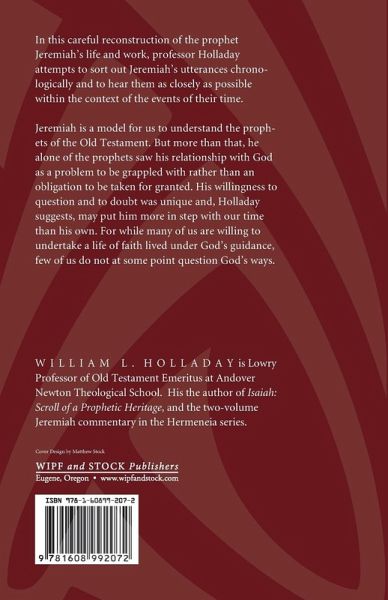 In this careful reconstruction of the prophet Jeremiah's life and work, Professor Holladay attempts to sort out Jeremiah's utterances chronologically and to hear them as closely as possible within the context of the events of their time. Jeremiah is a model for us to understand the prophets of the Old Testament. But more than that, he alone of the prophets saw his relationship with God as a problem to be grappled with rather than an obligation to be taken for granted. His willingness to question and to doubt was unique and, Holladay suggests, may put him more in step with our time than his own. For while many of us are willing to undertake a life of faith lived under God's guidance, few of us do not at some point question God's ways.