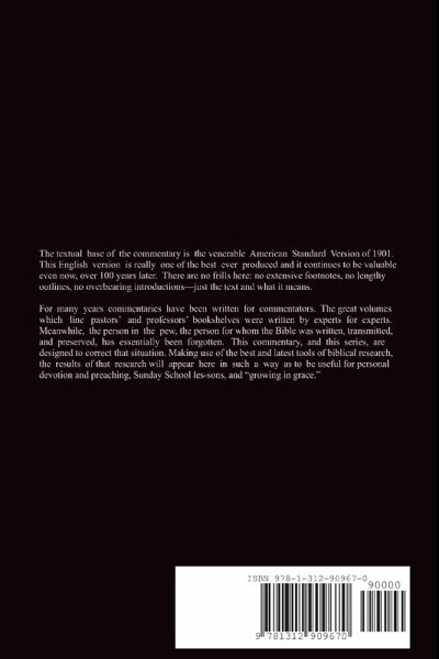 This commentary on Jeremiah is part of a series of commentaries, each to be published by Quartz Hill Publishing House, and each to be in a concise format. The textual base of the commentary is the venerable American Standard Version of 1901. This Eng-lish version is really one of the best ever produced and it continues to be valuable even now, over 100 years later. There are no frills here: no extensive footnotes, no lengthy outlines, no overbearing introductions-just the text and what it means.