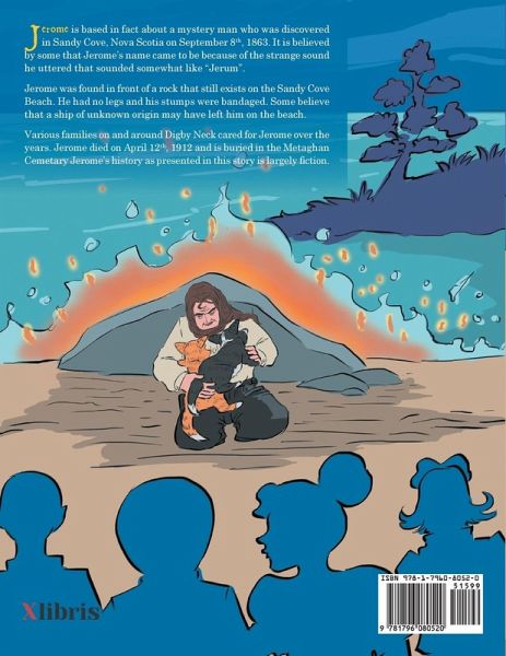 Jerome is based in fact about a mystery man who was discovered in Sandy Cove, Nova Scotia on September 8th, 1863. It is believed by some that Jerome's name came to be because of the strange sound he uttered that sounded somewhat like "Jerum". Jerome was found in front of a rock that still exists on the Sandy Cove Beach. He had no legs and his stumps were bandaged. Some believe that a ship of unknown origin may have left him on the beach. Various families on and around Digby Neck cared for Jerome over the years. Jerome died on April 12th, 1912 and is buried in the Metaghan Cemetary Jerome's history as presented in this story is largely fiction.