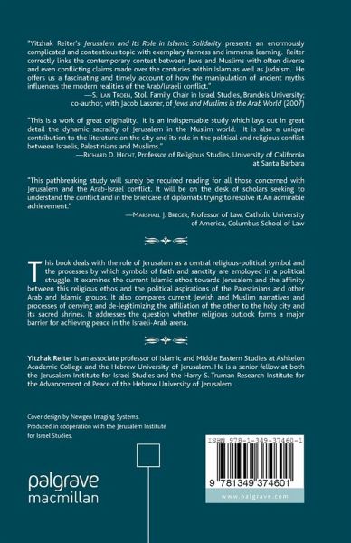 "Yitzhak Reiter s Jerusalem and Its Role in Islamic Solidarity presents an enormously complicated and contentious topic with exemplary fairness and immense learning. Reiter correctly links the contemporary contest between Jews and Muslims with often diverse and even conflicting claims made over the centuries within Islam as well as Judaism. He offers us a fascinating and timely account of how the manipulation of ancient myths influences the modern realities of the Arab/Israeli conflict." - S. Ilan Troen, Stoll Family Chair in Israel Studies, Brandeis University; Co-author, with Jacob Lassner, of Jews and Muslims in the Arab World (2007)