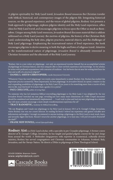 A pilgrim spirituality for Holy Land travel, Jerusalem Bound resources the Christian traveler with biblical, historical, and contemporary images of the pilgrim life. Integrating historical sources, on-the-ground experience, and the voices of global pilgrims, Jerusalem Bound presents a fresh approach to pilgrimage, explores pilgrim identity and the Holy Land experience, offers ideas for Holy Land travel, and encourages pilgrims to focus upon the Other as much as themselves. Unique among Holy Land resources, Jerusalem Bound discusses material that is seldom addressed on a Holy Land journey: the motives of Holy Land pilgrims, the history of the Christian Holy Land, understanding the holy sites, pilgrim practices, material objects, and the challenges of Holy Land pilgrimage. Emphasizing the incarnational nature of lived experience, the book encourages pilgrims to derive meaning in both the highs and lows of religious travel. Attentive to the transformational nature of pilgrimage, Jerusalem Bound is ultimately interested in Christian formation and the aftermath of the Holy Land journey.