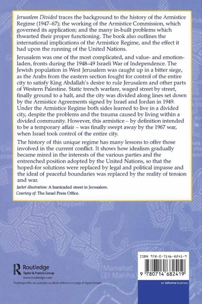 This work traces the background to the history of the Armistice Regime, established in 1947 to combat the fighting between Jews and Arabs in Jerusalem.