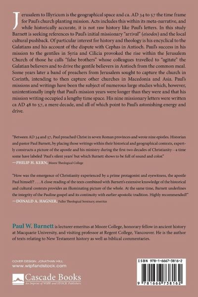Jerusalem to Illyricum is the geographical space and ca. AD 34 to 57 the time frame for Paul's church planting mission. Acts includes this within its meta-narrative, and while historically accurate, it is not raw history like Paul's letters. In this study Barnett is seeking references to Paul's initial missionary ""arrival"" (eisodos) and the local cultural pushback. Of particular interest for history and theology is his encyclical to the Galatians and his account of the dispute with Cephas in Antioch. Paul's success in his mission to the gentiles in Syria and Cilicia provoked the rise within the Jerusalem Church of those he calls ""false brothers"" whose colleagues travelled to ""agitate"" the Galatian believers and to drive the gentile believers in Antioch from the common meal. Some years later a band of preachers from Jerusalem sought to capture the church in Corinth, intending to then capture other churches in Macedonia and Asia. Paul's missions and writings have been the subject of numerous large studies which, however, unintentionally imply that Paul's mission years were longer than they were and that his mission writing occupied a lengthy time space. His nine missionary letters were written ca. AD 48 to 57, a mere decade, and all of which point to Paul's astonishing energy and drive.