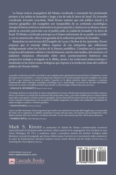 La buena noticia (euangelion) del Mesias crucificado y resucitado fue proclamada primero a los judios en Jerusalen y luego a los de toda la tierra de Israel. En Jerusalen crucificada, Jerusalen resucitada, Mark Kinzer sostiene que este publico inicial y el entorno geografico del euangelion son inseparables de su contenido escatologico. Aunque la buena noticia es universal en su preocupacion y cosmica en su alcance, nunca pierde su conexion particular con el pueblo judio, la ciudad de Jerusalen y la tierra de Israel. El Mesias crucificado participa en el futuro sufrimiento de su pueblo en el exilio y, con su resurreccion, ofrece una garantia de la redencion proxima de Jerusalen. Basandose en una lectura del Evangelio de Lucas y Hechos de los Apostoles, Kinzer propone que el mensaje biblico requiere de sus interpretes que reflexionen teologicamente sobre los hechos de la historia posbiblica. Considera asi la aparicion temprana del judaismo rabinico y los fenomenos, mucho mas tardios, del sionismo y el judaismo mesianico, ofreciendo sobre estos acontecimientos historicos una perspectiva teologica arraigada en la Biblia, atenta a las tradiciones judeocristianas y moderada en las restricciones teologicas que impone a la resolucion justa del conflicto politico de Oriente Medio.