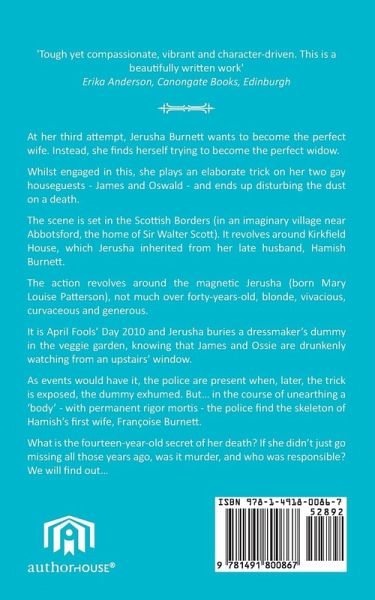At her third attempt, Jerusha Burnett wants to become the perfect wife. Instead, she finds herself trying to become the perfect widow. Whilst engaged in this, she plays an elaborate trick on her two gay house guests - James and Oswald - and ends up disturbing the dust on a death. The scene is set in the Scottish Borders (in an imaginary village near Abbotsford, the home of Sir Walter Scott). It revolves around Kirkfield House, which Jerusha inherited from her late husband, Hamish Burnett. The action revolves around the magnetic Jerusha (born Mary Louise Patterson), not much over forty-years-old, blonde, vivacious, curvaceous and generous. It is April Fools' Day 2010 and Jerusha buries a dressmaker's dummy in the veggie garden, knowing that James and Ossie are drunkenly watching from an upstairs' window. As events would have it, the police are present when, later, the trick is exposed, the dummy exhumed. But... in the course of unearthing a 'body' - with permanent rigor mortis - the police find the skeleton of Hamish's first wife, Françoise Burnett. What is the fourteen-year-old secret of her death? If she didn't just go missing all those years ago, was it murder, and who was responsible? We will find out...