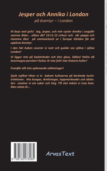 Hi boys and girls! Jag, Jesper, och min syster Annika i ungefär samma ålder? vilken då? 10-11-12 cirkus! och vår pappa och mamma åker på sommarlovet ut i Europa Världen för att uppleva äventyr. I den här boken snurrar vi runt och guidar oss själva i själva London! Vi ligger inte på badstränder och äter glass. Sällan! Hellre då övermogna persikor! Kultur är inte fult! Inte historia heller! Framför allt inte spännande utlänningar! Sjukt nyfiket tittar vi in bakom kulisserna på berömda turistattraktioner. Hos kungar, drottningar, loppmarknader och idoler. Sen snackar vi om saker och ting. Till slut måste vi resa hem. Men nästa år...