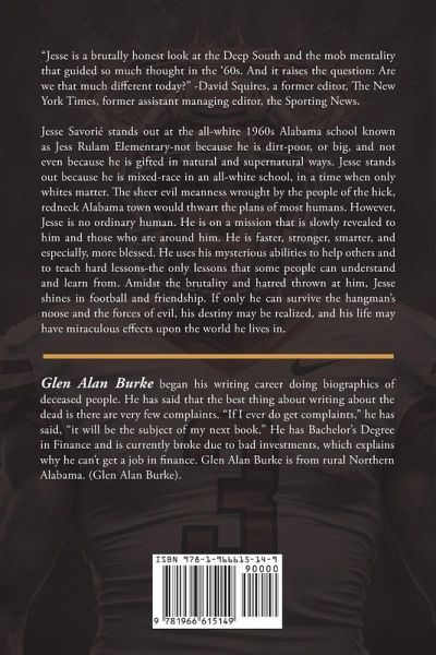 "Jesse is a brutally honest look at the Deep South and the mob mentality that guided so much thought in the '60s. And it raises the question: Are we that much different today?" -David Squires, a former editor, The New York Times, former assistant managing editor, the Sporting News. Jesse Savorié stands out at the all-white 1960s Alabama school known as Jess Rulam Elementary-not because he is dirt-poor, or big, and not even because he is gifted in natural and supernatural ways. Jesse stands out because he is mixed-race in an all-white school, in a time when only whites matter. The sheer evil meanness wrought by the people of the hick, redneck Alabama town would thwart the plans of most humans. However, Jesse is no ordinary human. He is on a mission that is slowly revealed to him and those who are around him. He is faster, stronger, smarter, and especially, more blessed. He uses his mysterious abilities to help others and to teach hard lessons-the only lessons that some people can understand and learn from. Amidst the brutality and hatred thrown at him, Jesse shines in football and friendship. If only he can survive the hangman's noose and the forces of evil, his destiny may be realized, and his life may have miraculous effects upon the world he lives in.