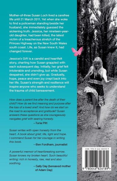 Mother-of-three Susan Loch lived a carefree life until 21 March 2011. Yet when she woke to find a policeman standing beside her husband, she immediately guessed the sickening truth. Jessica, her nineteen-year-old daughter, had been killed, the latest victim of a treacherous stretch of the Princes Highway on the New South Wales south coast. Life, as Susan knew it, had changed forever. Jessica's Gift is a candid and heartfelt story, charting how Susan grappled with each subsequent day. Initially, her grief felt intolerable and unending, but while Susan despaired, she didn't give up. Gradually, hope, peace and even joy crept back into her life. Susan's strength and resilience will inspire anyone who seeks to understand the trauma of child bereavement.