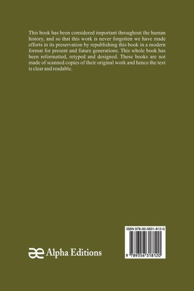 This book has been considered important throughout the human history, and so that this work is never forgotten we have made efforts in its preservation by republishing this book in a modern format for present and future generations. This whole book has been reformatted, retyped and designed. These books are not made of scanned copies and hence the text is clear and readable.