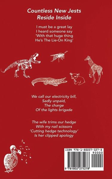 Countless New JestsReside Inside I must be a great layI heard someone say'With that huge thingHe's The Lie-On King' We call our electricity bill,Sadly unpaid,The chargeOf the lights brigade The wife trims our hedgeWith my nail scissors'Cutting hedge technology'Is her clipped apology